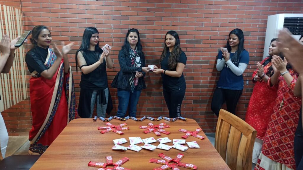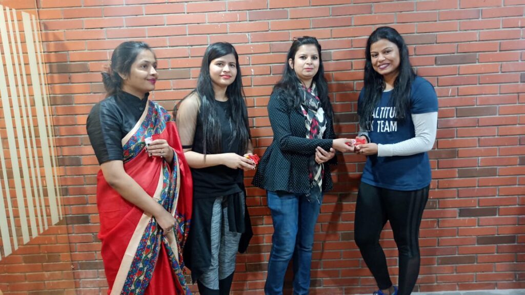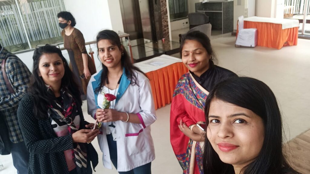 संस्था की संस्थापक रश्मि पाण्डेय ने बताया कि आज सफ़ायी कर्मचारियों और घरेलू सहियोगियो को सैनिटेरी नैप्किन बाटे गए साथ ही साथ स्वच्छ रहने के फ़ायदे बताए गए। सभी सहियोगी महिला कर्मचारियों ने अपने मन पसंद गाने गए और खूब जमकर डान्स किया। वोमेंस डे के उपलक्ष्य में महिला डॉक्टर नर्स और स्टाफ़ को गुलाब के फूल देकर सम्मानित किया गया। इस पूरे कार्यक्रम में दीप्ति, भुवनजीत कौर (सिम्मी), शीटू वर्मा, स्वाति, अंजलि, प्रियंका सिंह इत्यादि लोगों ने महत्व पूर्ण भूमिका निभायी।