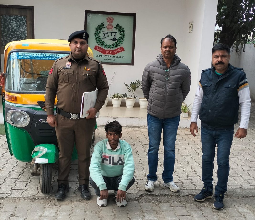 मामले में अपराध शाखा सेक्टर 65 की टीम ने अपने गुप्त सूत्रों से प्राप्त सूचना के अंतर्गत कार्रवाई करते हुए आरोपी चमन वासी गली न. 2 उंचा गाँव नियर राठोड चौक बल्लबगढ़ फरीदाबाद को शाहपुरा रोङ ऊंचागांव से आटो सहित गिरफ्तार किया है। आरोपी चोरी की वारदातों को नशा की पूर्ति के लिए अंजाम देता है। आरोपी को पूछताछ के बाद अदालत में पेश कर जेल भेजा गया।