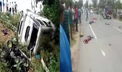 (Front News Today) छतरपुर। मध्य प्रदेश के छतरपुर जिले में पन्ना रोड पर जखीरा टेक मंदिर के पास दुर्घटना में 8 लोगों की मौके पर ही मौत हो गई। घटना में एक बच्ची की भी मौत हो हुई है। जानकारी के अनुसार दुर्घटना दोपहर एक बजे की बताई जा रही है। दुर्घटना का कारण एक स्कोर्पियो कार को बताया जा रहा है यह कार पन्ना की तरफ जा रही थी, जो दो मोटर साइकिलों से टक्करा गई। दोनों मोटर साइकिल सवार छतरपुर की तरफ जा रहे थे। हादसे में एक बच्ची का सिर धड़ से अलग हो गया और लाशें सड़क पर बिखरी गईं। सूचना मिलने के बाद मौके पर पहुँची बमीठा थाना पुलिस ने शवों को पोस्टमार्टम के लिए अस्पताल भिजवा दिया है।