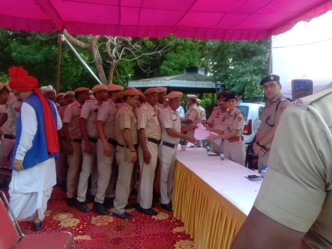 फरीदाबाद:- बता दें कि श्रावण मास में 22 जुलाई से कावड़ यात्रा आरंभ हुई थी जिसका समापन 2 अगस्त को महाशिवरात्रि पर्व के अवसर पर हुआ है इस अवसर पर ट्रैफिक कर्मियों द्वारा दिन-रात मेहनत करके कावड़ यात्रा को सफल बनाया है, जिस पर आज पुलिस उपायुक्त यातायात उषा ने कर्मचारियों की हौसला अफजाई के लिए अच्छी ड्यूटी करने वाले कर्मचारियों को प्रशंसा पत्र देखकर सम्मानित किया है