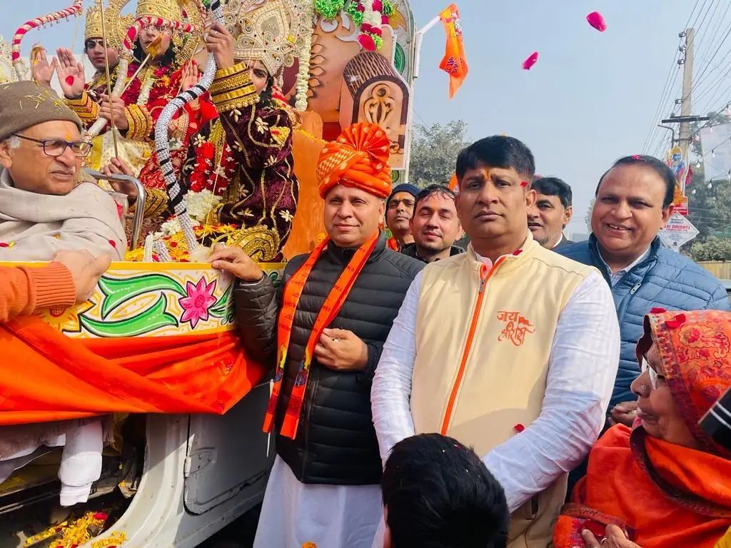 फरीदाबाद : अयोध्या में भगवान श्री राम की प्राण प्रतिष्ठा से सैनिक कॉलोनी में भव्य श्री राम की यात्रा निकाली गई। यात्रा में सैनिक कॉलोनी से हजारों श्रद्धालुओं ने भाग लिया इसमें सभी बूढ़े बच्चे महिलाएं शामिल थी। यात्रा में भिन्न-भिन्न प्रकार की सुंदर झांकियां निकाली गई। जिसमें बच्चों ने श्रीराम, लक्ष्मण, माता सीता, राजा दशरथ, कौशल्या, केकयी, सुमित्रा, जटायु, हनुमान का सुंदर रूप धारण किया हुआ था। यात्रा सैनिक कॉलोनी से मार्केट से होते हुए सैनिक कॉलोनी के अलग-अलग क्षेत्रों में घूमी। कांग्रेस नेता विजय प्रताप ने प्रभु श्रीराम की यात्रा का भव्य स्वागत किया और परिवार सहित यात्रा में शामिल श्रद्धालुओं पर फूल बरसाए। इस मौके पर विजय प्रताप ने कहा कि भगवान राम सर्वज्ञ हैं और सबके हृदय में है। सभी को बधाई और भगवान राम से यही प्रार्थना है कि सब पर उनकी कृपा बनी रहे। निवर्तमान पार्षद राकेश भड़ाना ने कहा कि सैनिक कॉलोनी में आयोजित ये यात्रा आस्था का प्रतीक है Vijay pratap singh