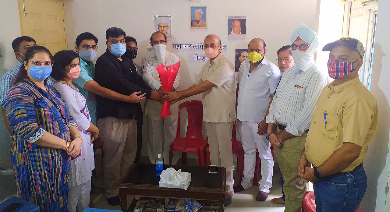 नोएडा महानगर कांग्रेस के नवनियुक्त पदाधिकारी एवं कार्यकर्ताओं को टोपी एवं बैच लगाकर सम्मानित किया गया