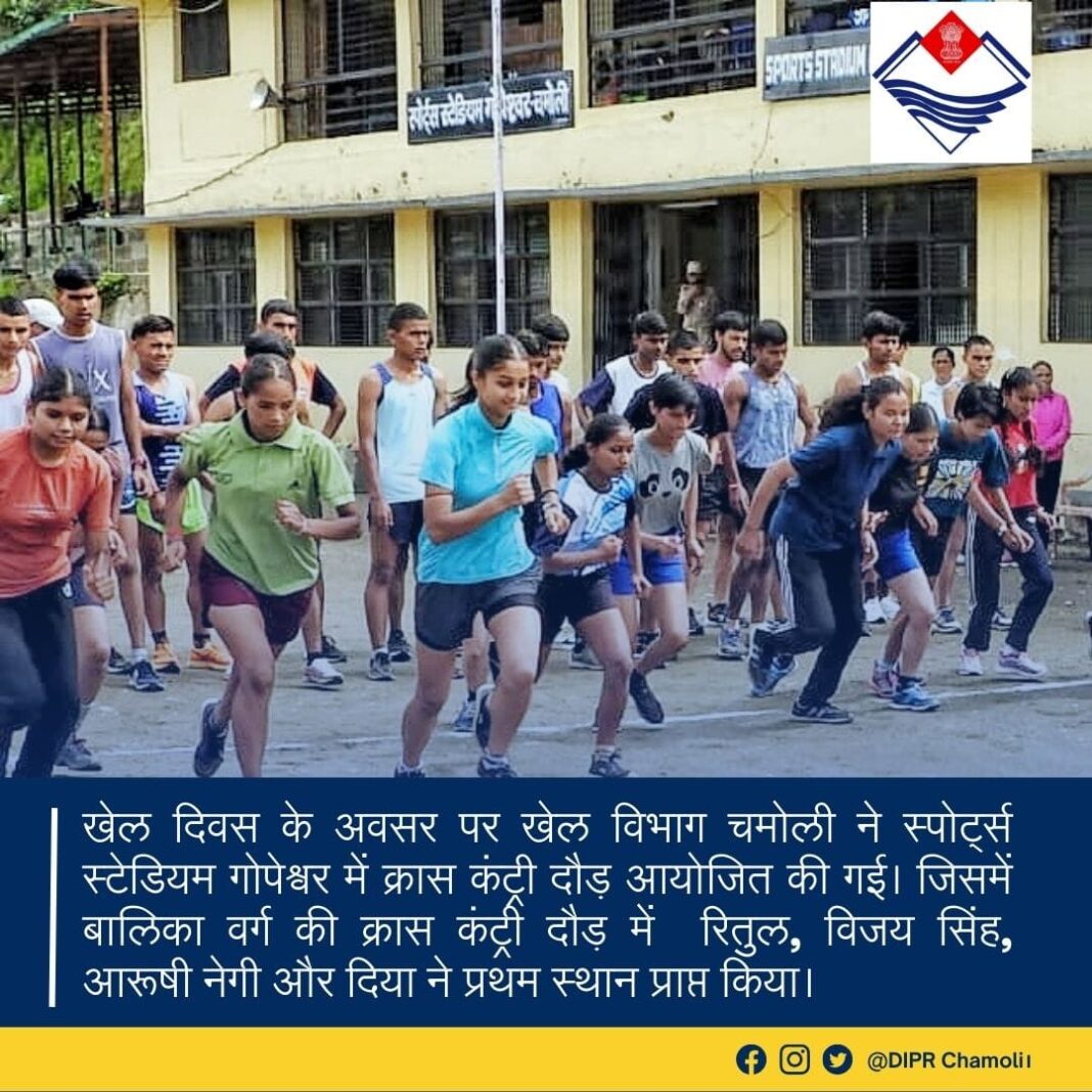 खेल दिवस के अवसर पर खेल विभाग चमोली द्वारा स्पोर्ट्स स्टेडियम गोपेश्वर में क्रास कंट्री दौड़, कबड्डी, बैडमिंटन व हॉकी प्रतियोगिता का आयोजन किया जा रहा है। गुरुवार को यहां अपर जिलाधिकारी विवेक प्रकाश ने हॉकी के जादूगर मेजर ध्यानचंद की चित्र पर माल्यार्पण कर स्पर्धाओं का शुभारंभ किया। गुरुवार को बालक व बालिकाओं की चार आयु वर्गों में क्रॉस कंट्री दौड़ का आयोजन किया गया।