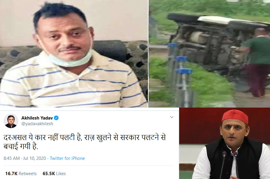 अखिलेश यादव ने ट्वीट किया, ‘दरअसल ये कार नहीं पलटी है, राज़ खुलने से सरकार पलटने से बचाई गयी है.